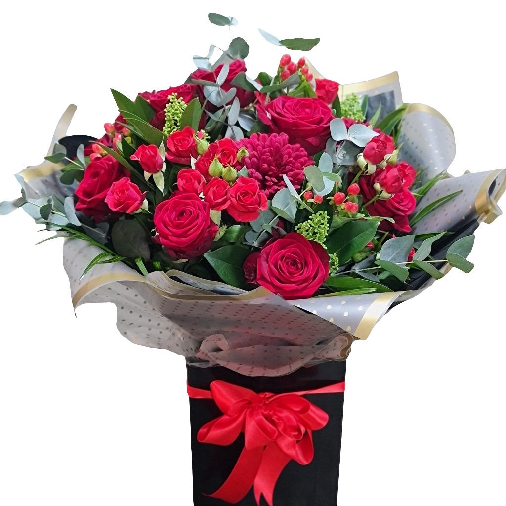A beautiful mixed bouquet, including a Naomi Rose, carnations, gerbras and mixed foliage